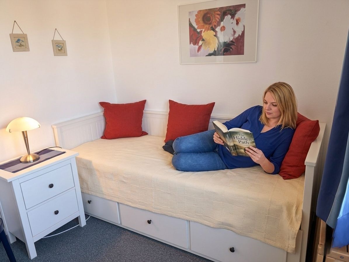 3 -Sterne-Wohnung, etwa. 55 m2 groß, bestehend aus einem Wohnraum, einem großen Schlafzimmer sowie einem kleinen Schlafzimmer, einem Duschbad und einem großen Südbalkon. Im großen Schlafzimmer gibt es ein Doppelbett, im kleinen Schlafzimmer befindet sich ein Bett, das eine Größe von 2 x 0,80 m hat und auf eine Größe von 2m x 1,60m erweitert werden kann. Optional kann zusätzlich ein Kinderbett aufgebaut werden. Im Wohnzimmer befindet sich eine gemütliche Couchecke aus Leder, ein großer LED-Farbfernseher mit sowie ein Radio. Auch ist im Wohnraum eine komplett ausgestattete Küchenzeile mit Mikrowelle, Spül- sowie Kaffeemaschine und ein Wasserkocher installiert. Wlan stellen wir kostenlos bereit.